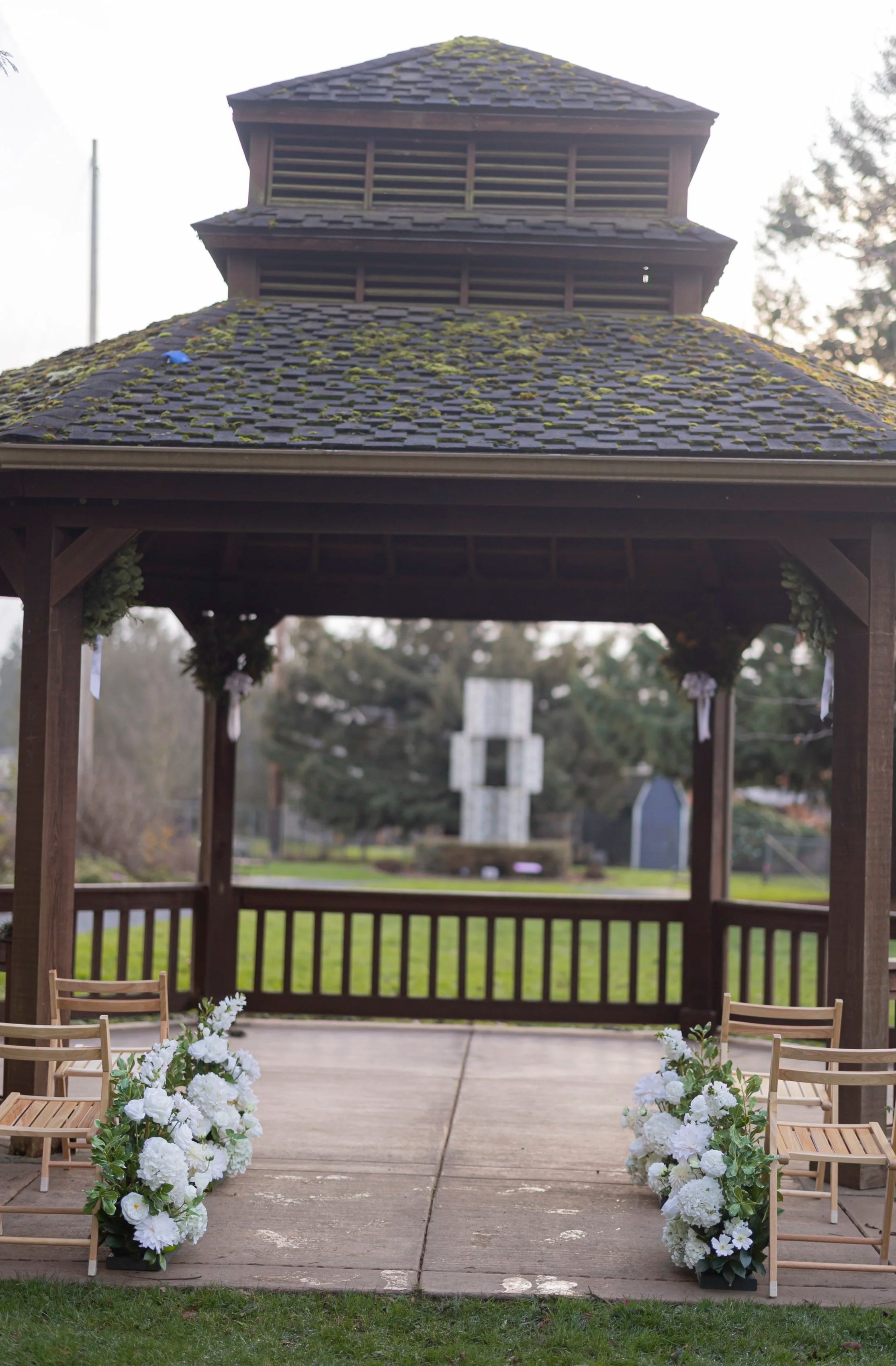 Our add-on floral swag packages are designed to enhance existing structures with floral accents. Think — architectural pillars, archways, altar backdrops, ceremony frames, or a gazebo.