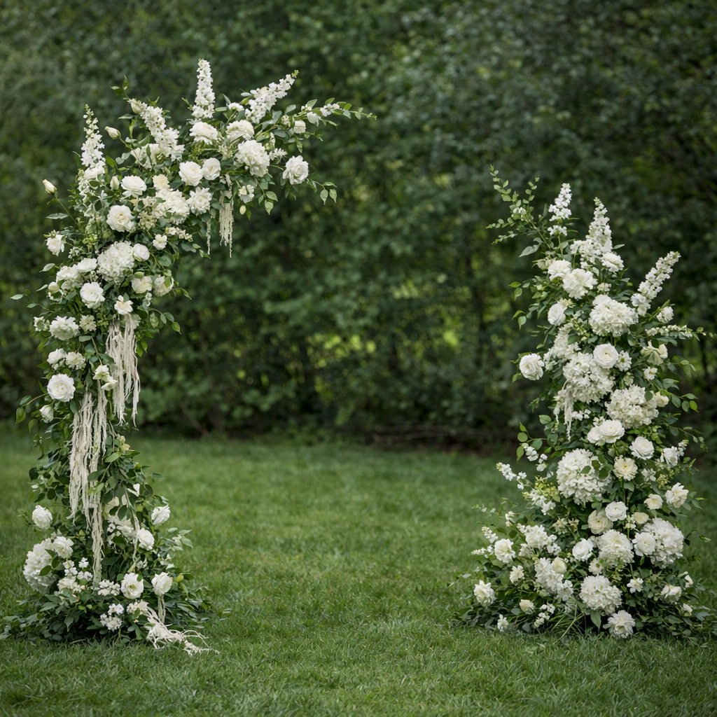 These packages include the florals only and do not include the structure itself. This can be added to The Opal Collection rental, as a semi-custom option, or to a fully customized order. Starting at $200 each, we’ll guide you in selecting the number of swags to achieve your desired look!